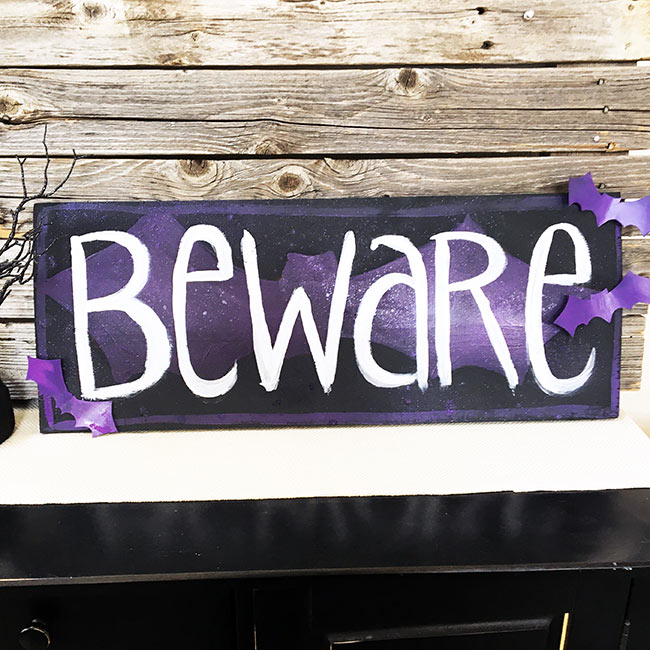 Start by giving your boo sign a few coats of black chalky finish paint to give it a good base color. It will take one to two coats to get adequate coverage.
