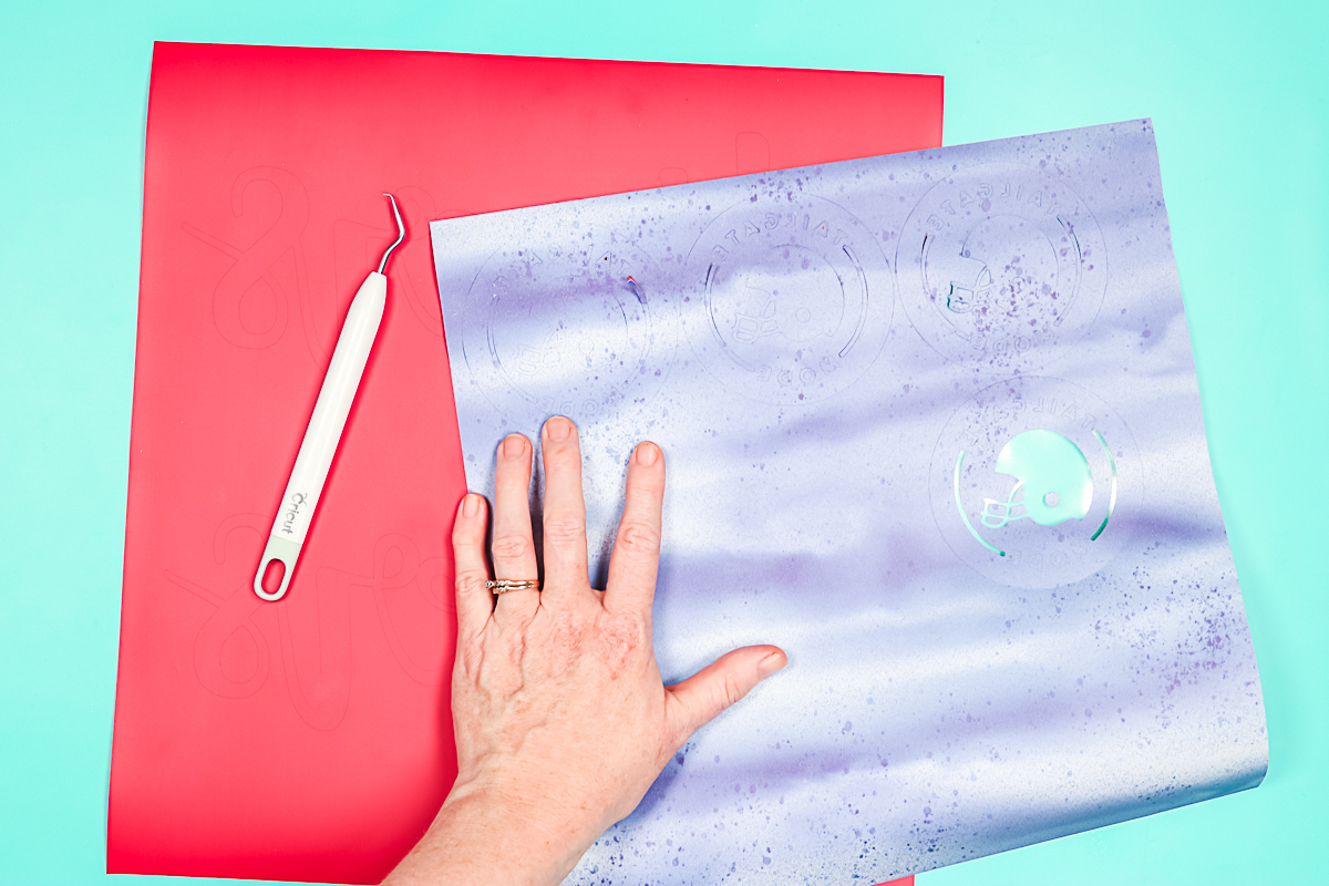 For each of these materials, you want to weed away all the excess. You can use a weeding hook for the iron-on. For Infusible Ink, I try to use my hands if at all possible.