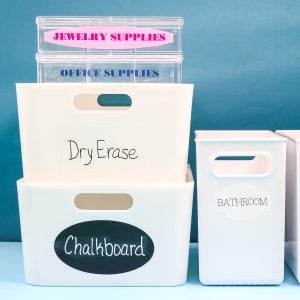 I love using my Cricut to make easy and fun labels to help me organize my home. There is also a Cricut label material available that you can use your Cricut Pens to write on. See how to use that material here. That gives you four options in total for making Cricut labels for all your projects, so you are sure to find one that is just right for your home!