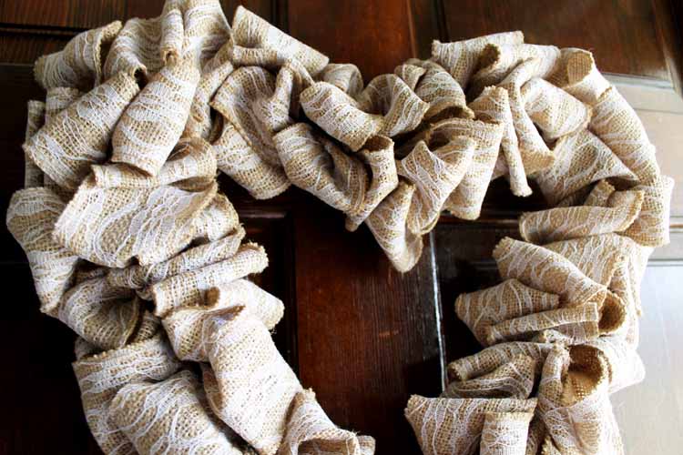 I am loving this combination of lace with rustic burlap in a heart shape! I hope you will get your supplies and make your heart wreath.