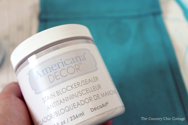- As the project dried, the stains started to peek through my new painted fabric. So, I broke out the Americana Stain Sealer/Blocker. (This is a clear product that is proved to block stains on your surfaces. I used this product on my fabric first then one more coat of chalky finish on top of it. Please note that the stain blocker works best if allowed to cure for an extended period of time. I allowed 5 days before painting over it.)