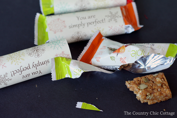 This holiday season give an edible gift with our bar gift wrappers. This post is sponsored by ZonePerfect however all projects and opinions are my own. You can wrap up a ZonePerfect Perfectly Simple Limited Edition Bars like I did here for a great gift that is perfect for teachers, friends, neighbors, your mail carrier, and so much more! Plus with the ZonePerfect bars they can indulge in holiday sweets, without the guilt (they are under 200 calories!).