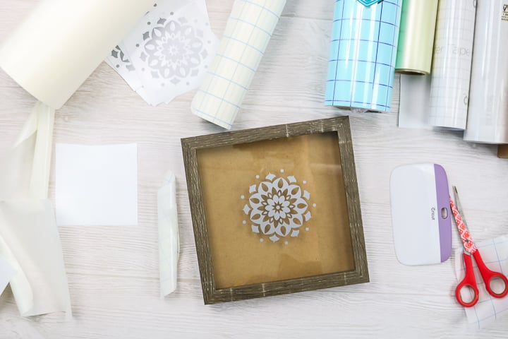 Now that we have our brands, it is time for the comparison. For each of the brands, I used the same mandala design for transferring. All of these were cut from Cricut Removable Vinyl in silver. I also used the same procedure of burnishing once across the front and once across the back before lifting up my design.