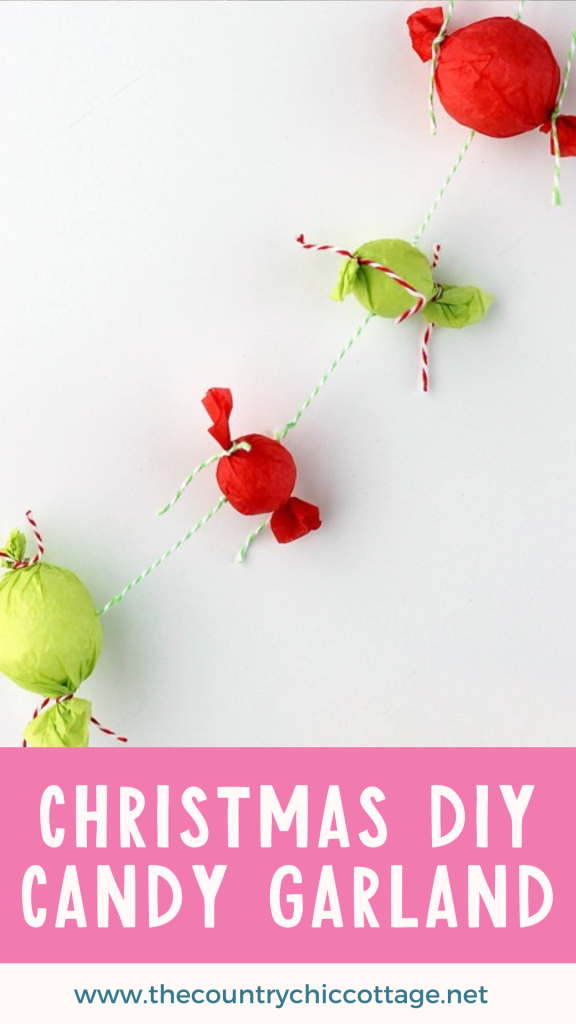 Create the same type of candy garland in minutes using styrofoam balls and tissue paper. This is a great Christmas craft to make with your kids because they can help pick out colors, create the candy pieces, and string everything together onto the baker's twine!
