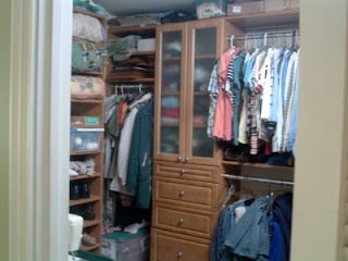 - My closet serves as a clothes closet, a linen closet, a craft room, an etsy business, a farm storage area, a sports storage area, frankly you name it. Working it all in was tough…but I made it through!