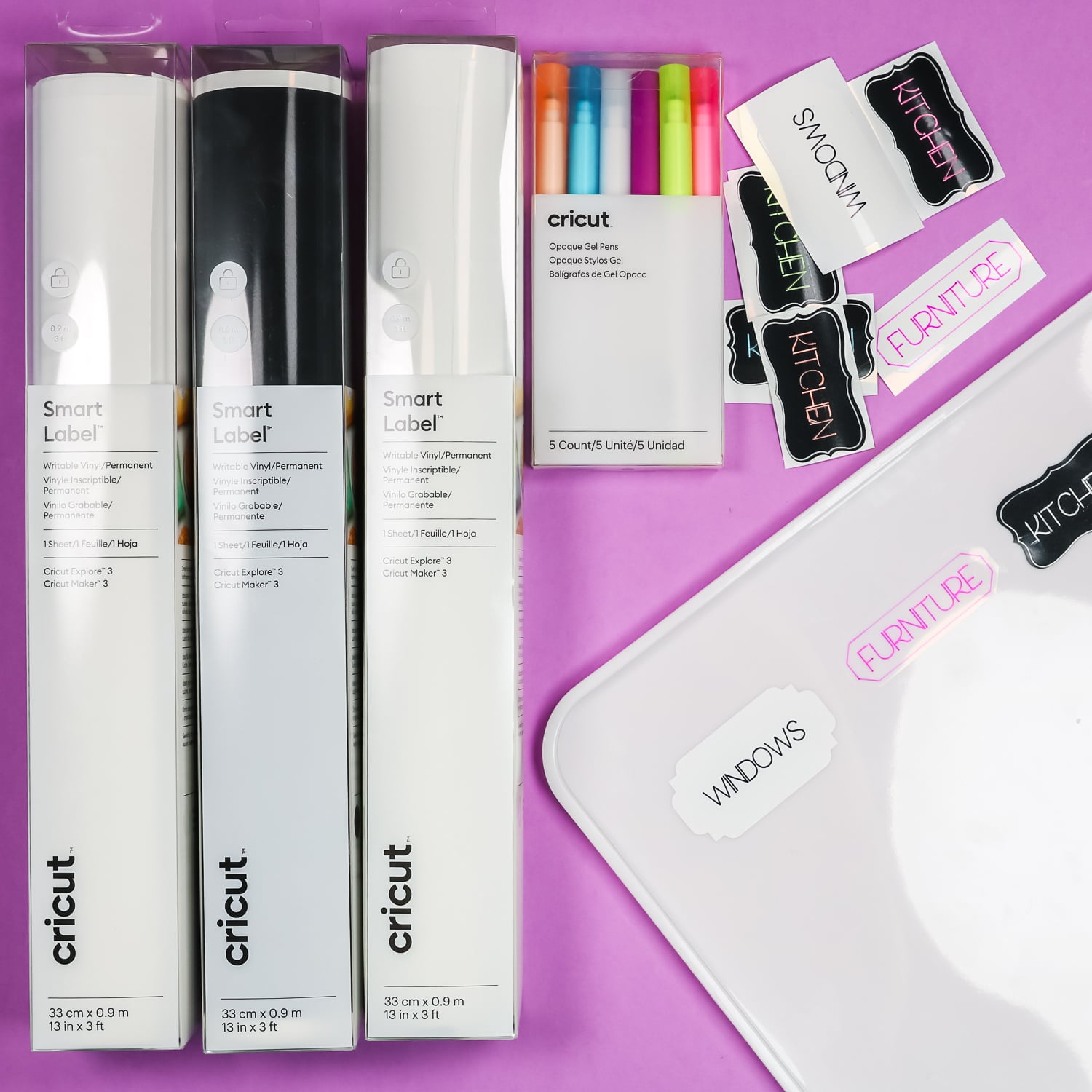 Cricut Smart Label is a writable vinyl. The vinyl surface is different from regular vinyl, so you can write on it with Cricut pens without it smearing. It dries quickly, and you can make labels really easily with it.