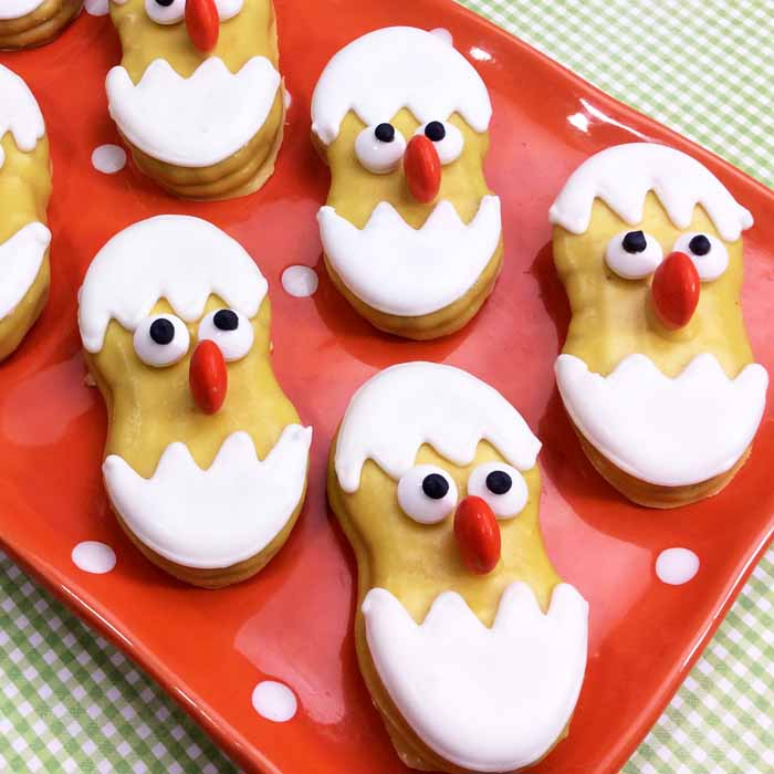 Make these Easter chick desserts in minutes for your celebration. Yes, Easter will be here before you know it. Start planning now with this quick and easy dessert that the kids will love. I adore coating Nutter Butter cookies in a variety of chocolate melts to make desserts for just about every season. This is just my latest edition.