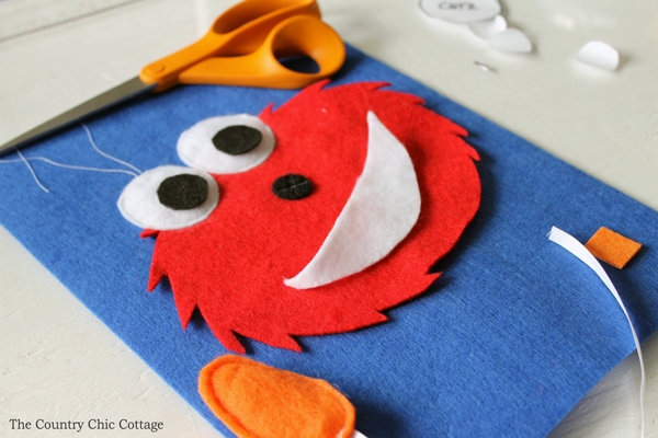 Now lets make this Elmo busy book page for all of those kids that love Sesame Street. They can now pin the nose on Elmo anytime they want!