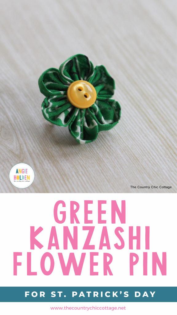 - Plus another drop of hot glue to put a button in the center. Now your Green Kanzashi Flower Pin is complete and ready to wear this Saint Patrick’s Day.