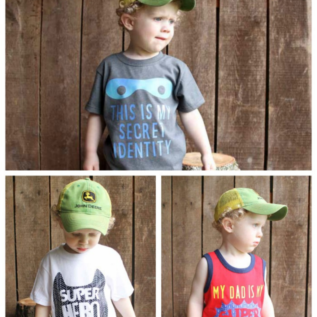 Make one of these shirts or one of each! Your little one might just find a superhero of their own.