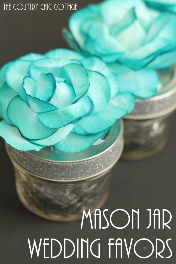 Grab your paper flowers and hot glue and make these mason jar wedding favors for your big day. They can be made in seconds and won't cost a fortune! Can you imagine an entire table full of these beauties?? Love!