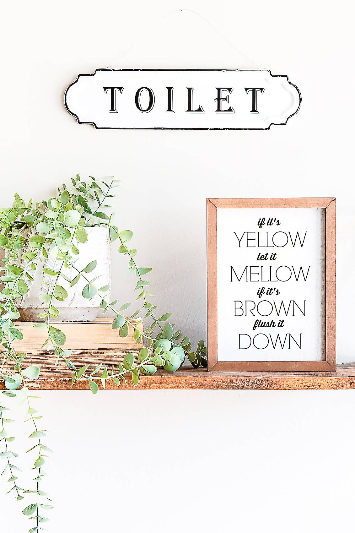 I have a fun little treat for y’all today with my if it’s yellow let it mellow printable bathroom art. You can print this Meet the Fockers bathroom art for your home. Just see below for how to print it for free. This is a fun sign with the famous Meet the Fockers quote “if it’s yellow let it mellow, if it’s brown flush it down”. It is meant to be a funny, quirky addition to your bathroom. Download and print yours below then hang to make your guests giggle! After all, who wants to be serious in the bathroom?