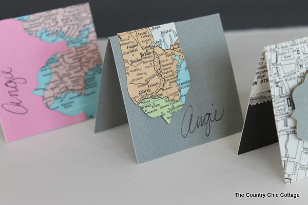 I cut the map into a fun shape for the next name card.