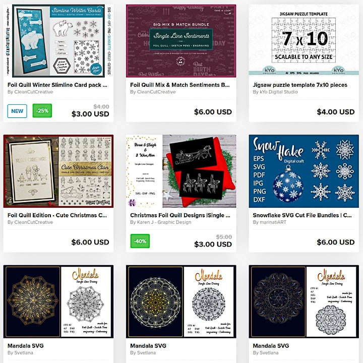 - Design Bundles – you can always find designs under crafters and single line designs. This source is mainly for draw files.