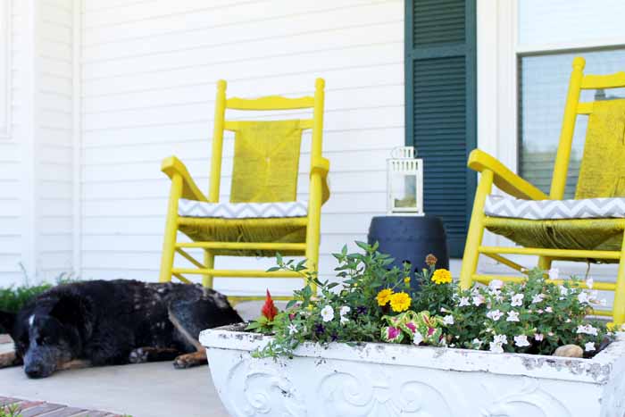 Love the unexpected pops of yellow on your porch. It looks so fun and inviting.