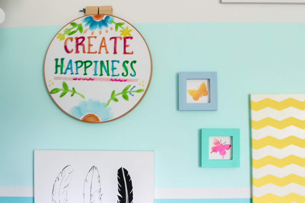 These will look amazing in any room of your home and mom will love to receive them as a gift! You can make as many or as few of these as you would like. I hung them next to the watercolor hoop art that I also made.