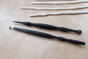 • I found the clay tools pictured here useful for this task. They helped me to work the clay into the gaps and also smooth it down. These are optional but very useful.