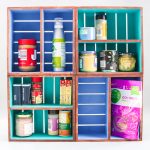 Then paint the inside of each crate with the craft paint. Be sure to choose paint colors that will work with your kitchen’s decor. I did two coats of paint but you may need more or less depending on what type of paint you are using. Just be sure to allow it to dry in between coats.